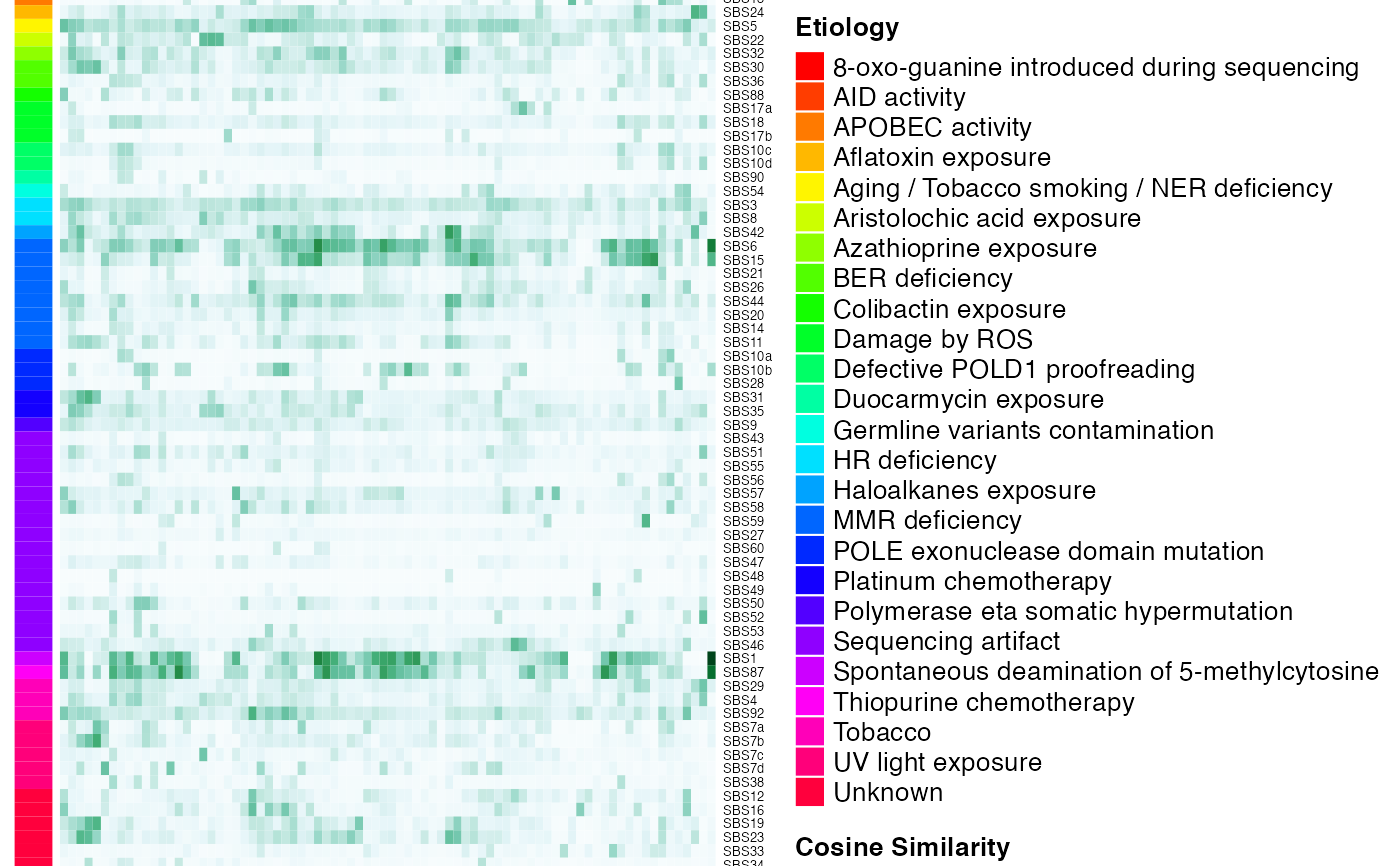val<-generateCOSMICMutSigSimHeatmap(read.maf(maf));draw(val)